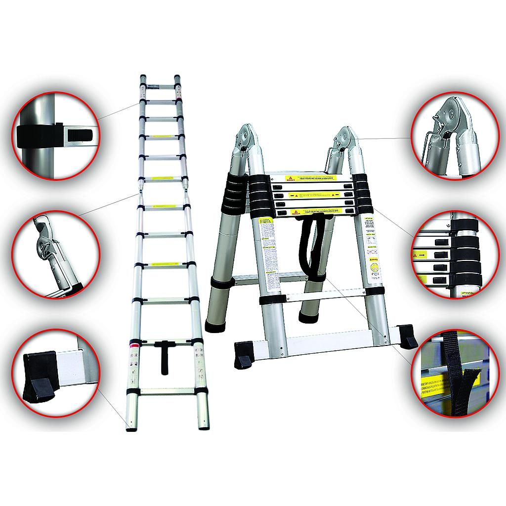 Echelle Telescopique, Échelle Pliable, 3,8 mètre(s), Sac de transport OFFERT, EN 131, Charge maximale: 150 kg