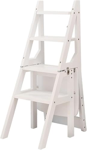 Chaise D’échelle De Bibliothèque Pliante en Bois, échelle De Bibliothèque à 4 étapes, Chaise Pliante Convertible Tabouret D’Affichage pour Adultes Bureau Maison Cuisin, White
