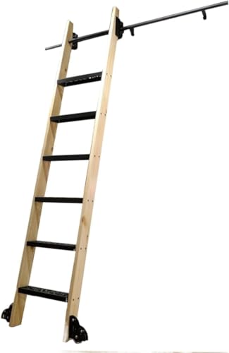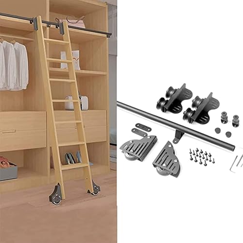 ZJFJMBD Kit de quincaillerie pour échelle de bibliothèque coulissante rétractable, Rail de quincaillerie pour échelle roulante pour Maison/Bureau/bibliothèque Rail Roulant en Acier Noir