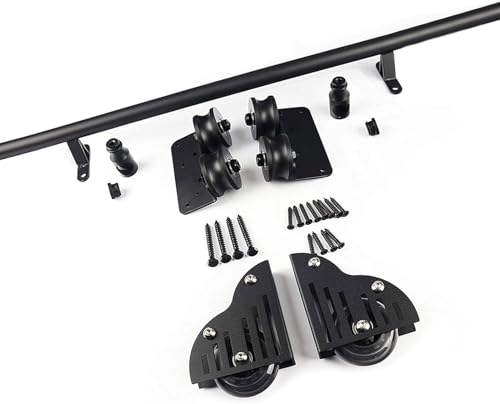 Kit De Porte De Grange Coulissante 3,3 Pieds-13 Pieds Échelle Coulissante Quincaillerie De Bibliothèque Kit De Rail Roulant, 6.6ft/200cm Track Kit