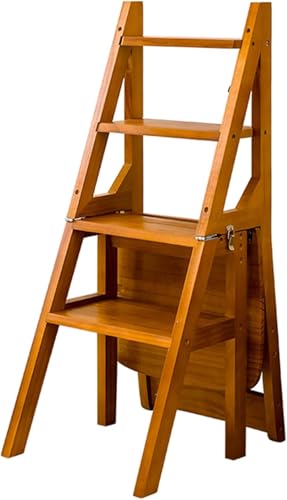 Chaise D’échelle De Bibliothèque Pliante en Bois, échelle De Bibliothèque à 4 étapes, Chaise Pliante Convertible Tabouret D’Affichage pour Adultes Bureau Maison Cuisin, Yellow Walnut