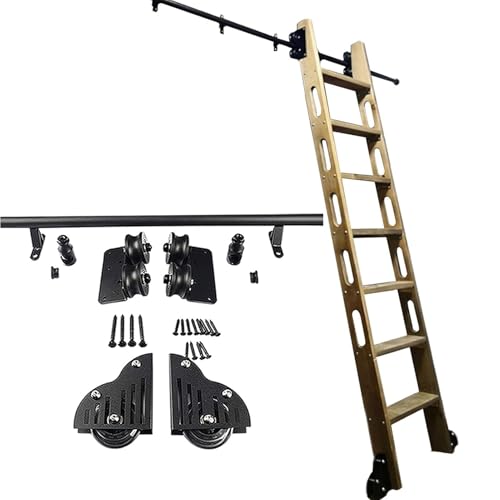 LKYLGYU Kit de quincaillerie pour échelle coulissante - Quincaillerie en Acier Noir pour échelle de bibliothèque roulante de Style Grange, système de Rail Coulissant pour la Maison ou Le Bureau