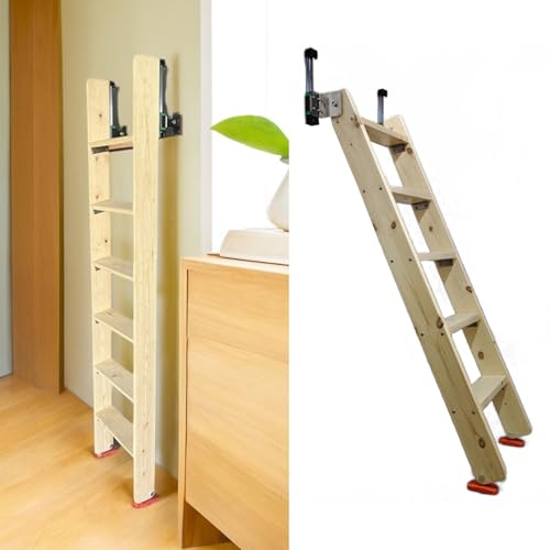 Échelle escamotable de grenier avec rails coulissants, haute capacité de charge, échelle murale pour grenier, échelle de cave/garage en bois
