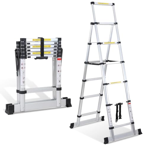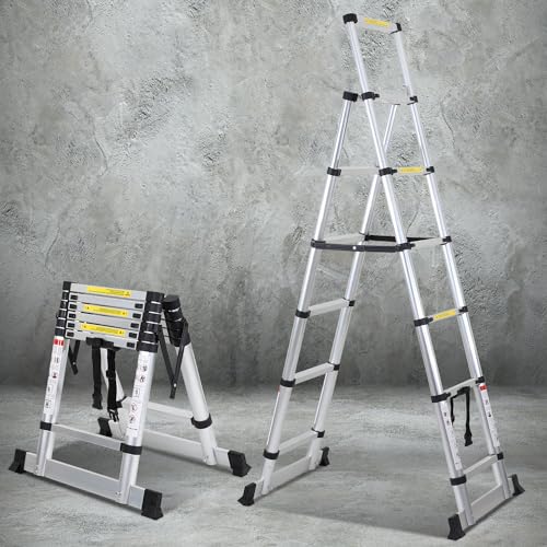 Échelle articulée pliante et télescopique en aluminium 4x3 marches 2,81m 1 tablette SECURY-T