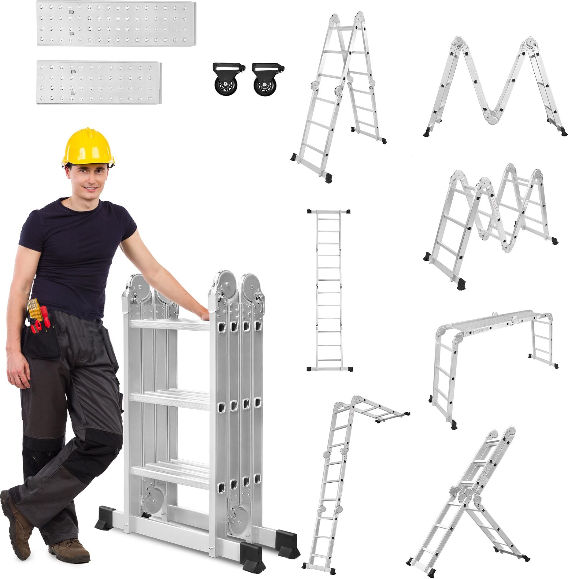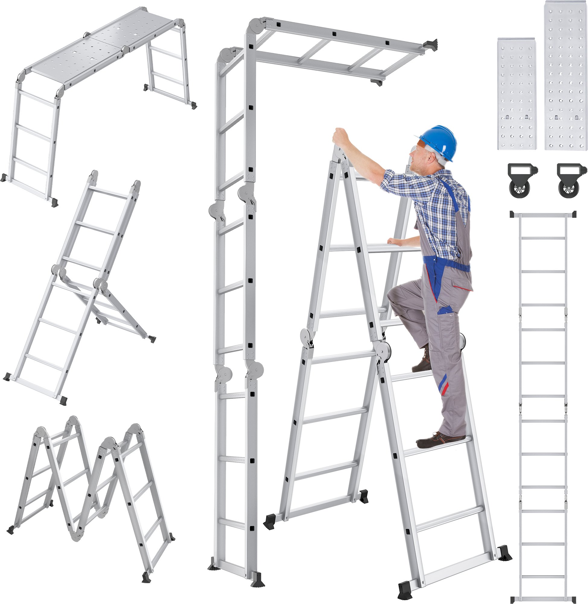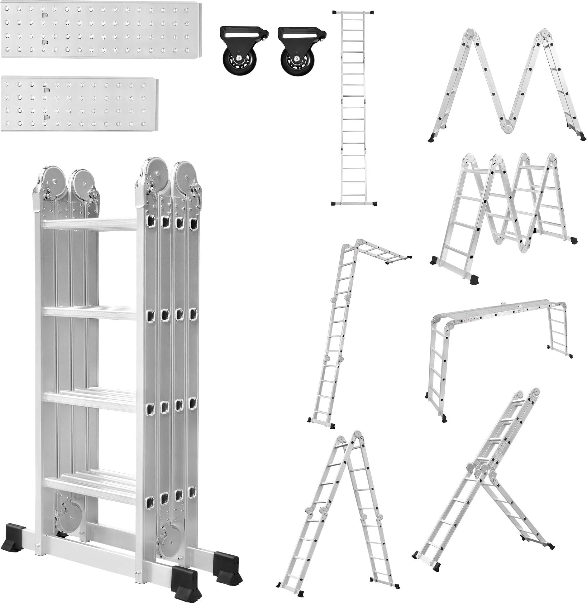 Varan Motors - DLM104 Echelle, escabeau, echafaudage multi-fonctions en alu de 4.60m, 16 échelons