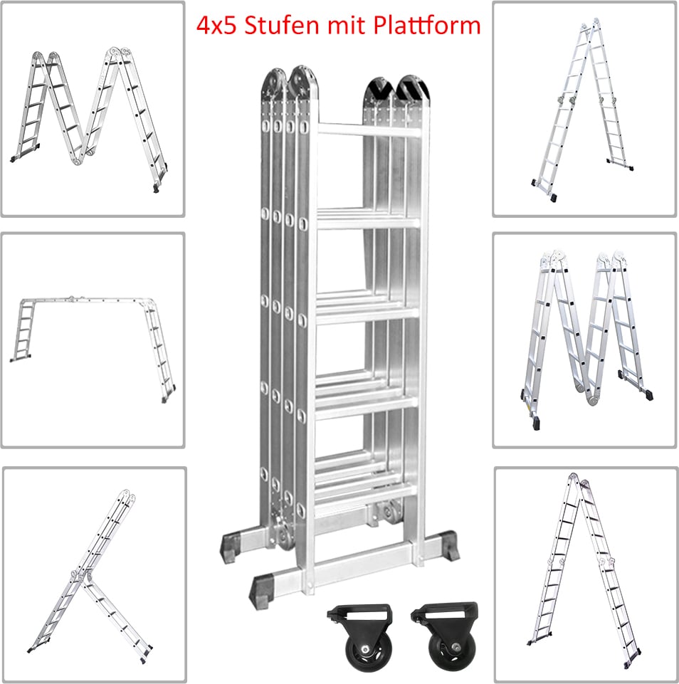 NAIZY 4×5 marches 584cm Aluminum Echelle d'échafaudage Echelle multifonctionnelle Echelle combinée Echelle pliante Echafaudage avec 2 plateformes
