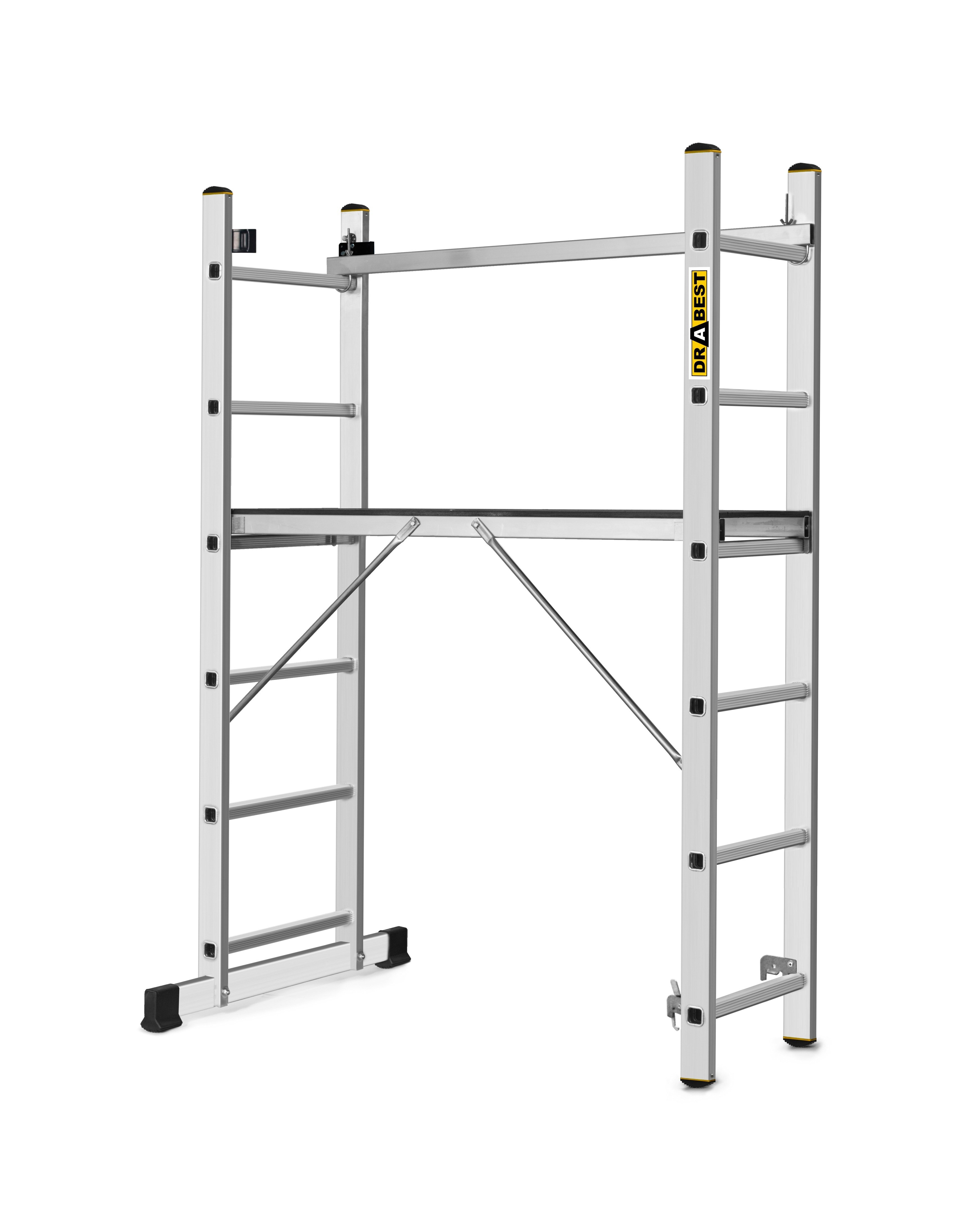 DRABEST Pro Échelle 3en1 en Aluminium - Échafaudage, Échelle Polyvalente avec Plate-Forme de Travail et Crochet de Seau - Réglable en Hauteur, Pliable - 2X 6 Marches