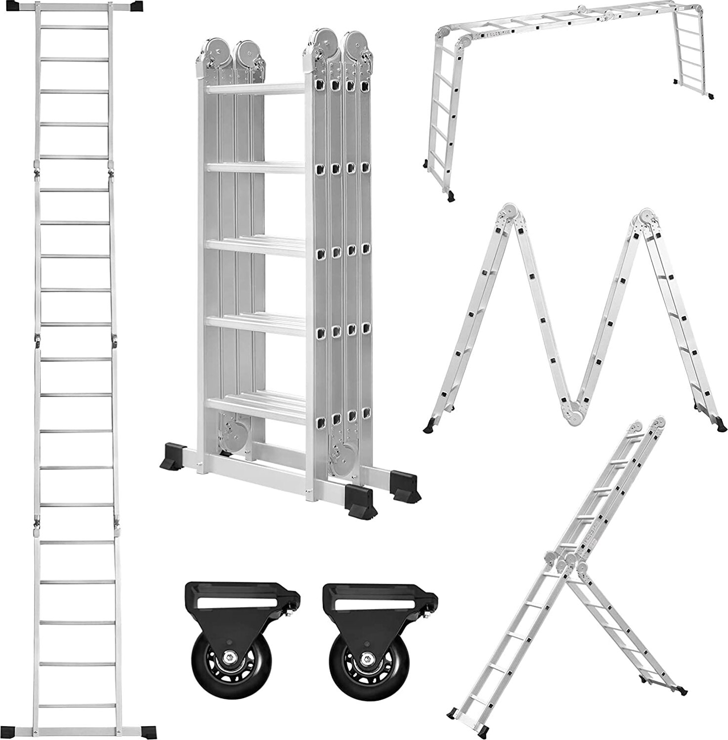 Varan Motors - DLM105 Echelle, escabeau, echafaudage multi-fonctions en alu de 5.92m, 20 échelons