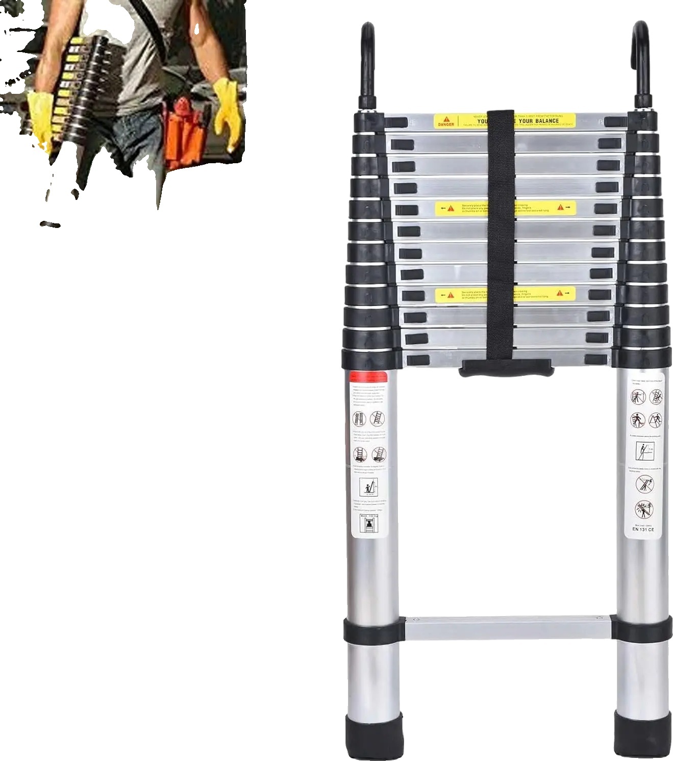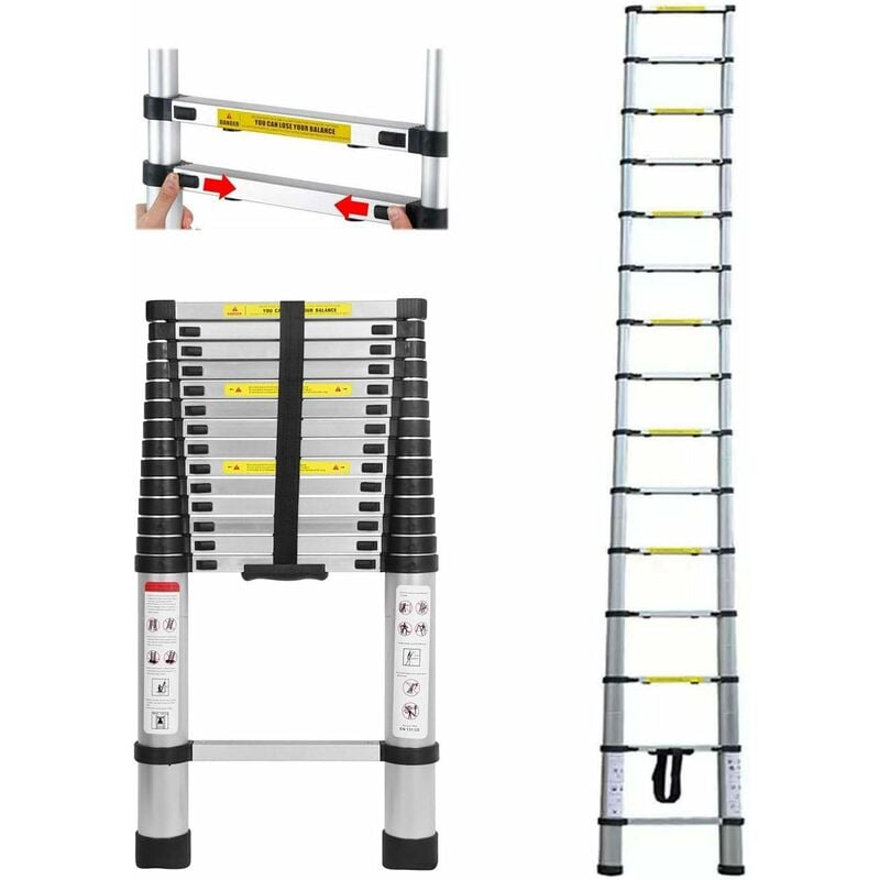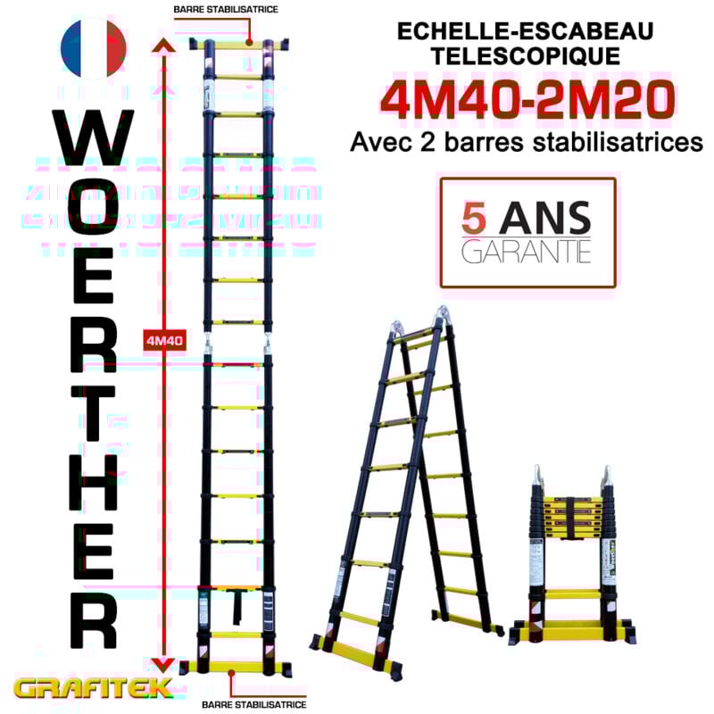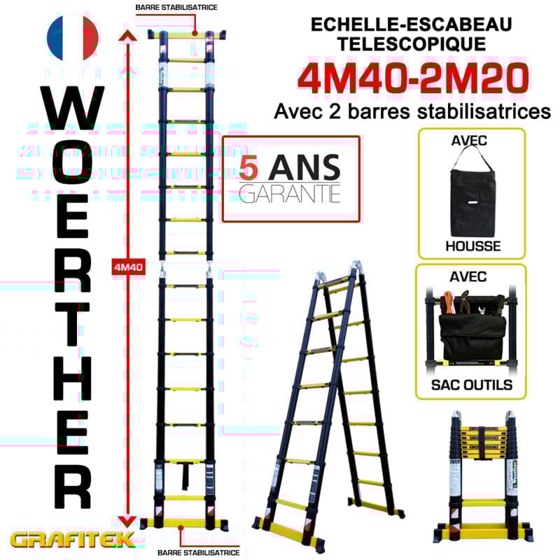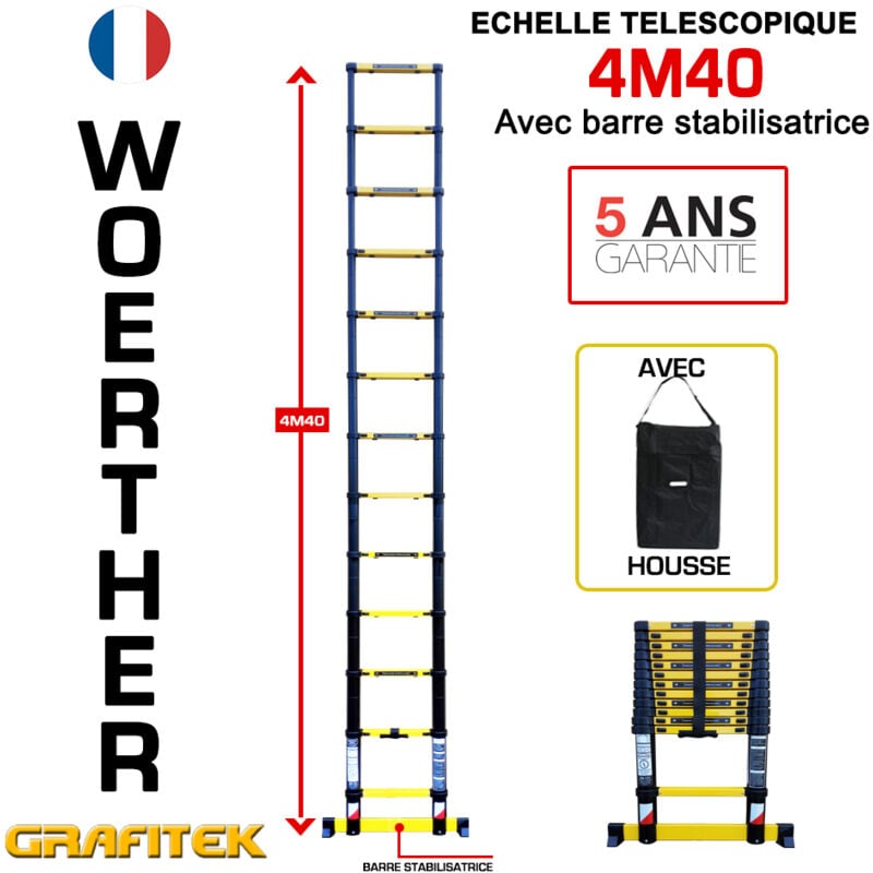 Echelle télescopique 4m40 Woerther Grafitek avec Barre stabilisatrice - Plus Housse - Garantie 5 Ans