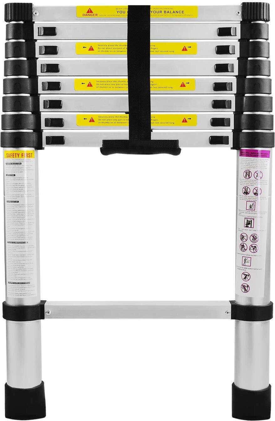 Échelle télescopique de 2,6 m en aluminium antidérapante avec 9 échelons pour extérieur et intérieur - Charge de 150 kg