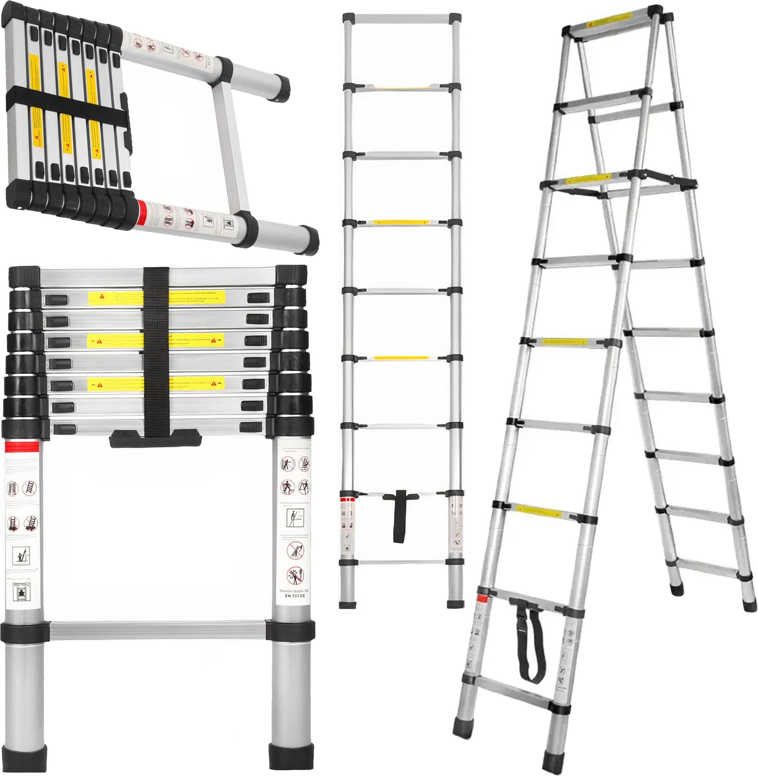 Échelle télescopique extensible 2,6 m de hauteur - Échelle pliante - Charge maximale : 150 kg - Échelle télescopique en acier inoxydable EN131 Safe Standard - Capacité de charge de 330 LB
