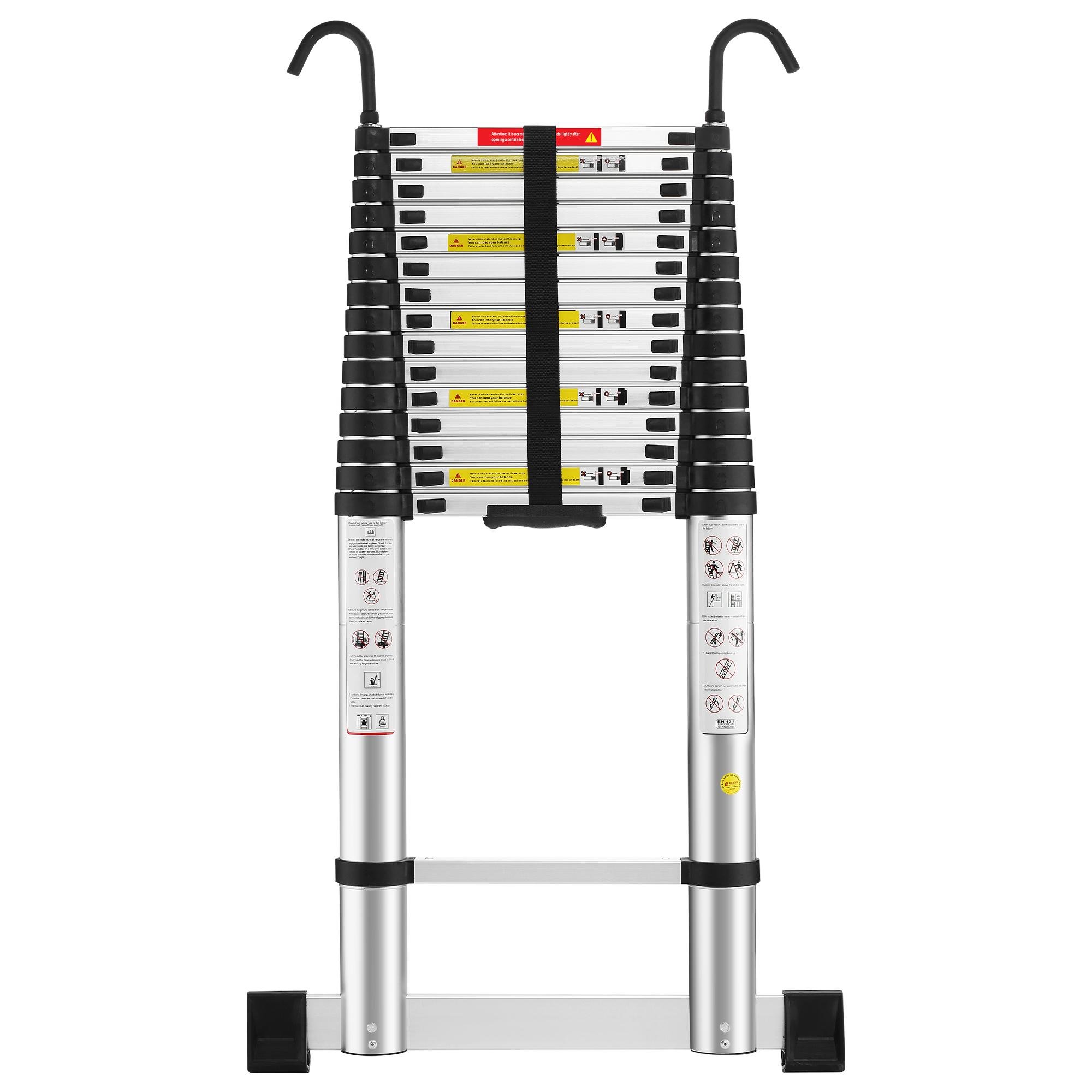 Échelle télescopique Extensible 6,2 m avec 2 Crochets, échelle loft Robuste, Escabeau Telescopique en Aluminium - Échelle Multi-usages - avec 15 Étapes- Charge maximale : 150 kg - EN131