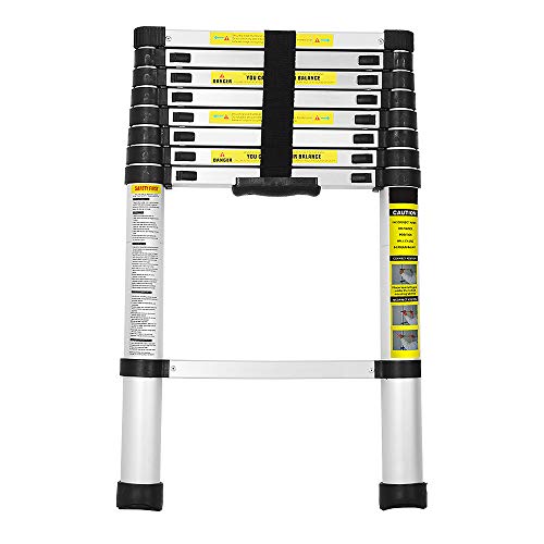 Cecaylie Échelle télescopique de 2,6 m - en Aluminium - Extensible - avec Pieds antidérapants - Multifonction - pour Grenier - Portable - Charge maximale : 150 kg
