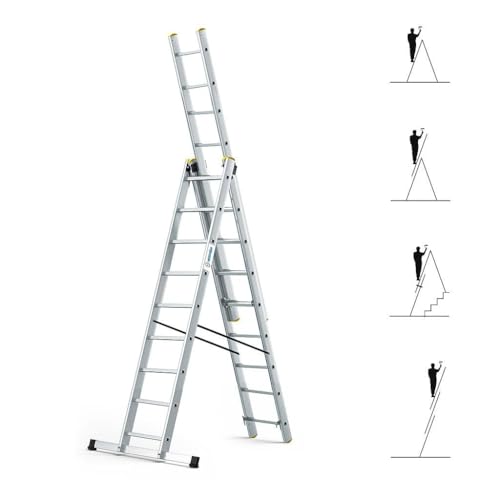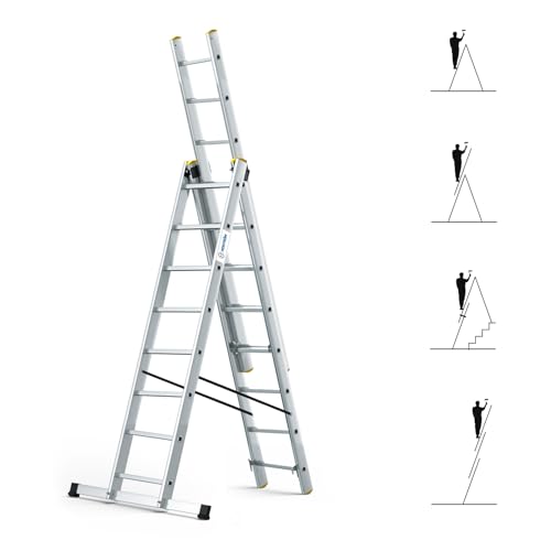 HOSTRÖM Echelle Transformable 3 Plans StablePro 3x9 marches Aluminium Extensible coulissante, 6 Positions, Hauteur Travail Max 6,10m, Garantie 5 Ans
