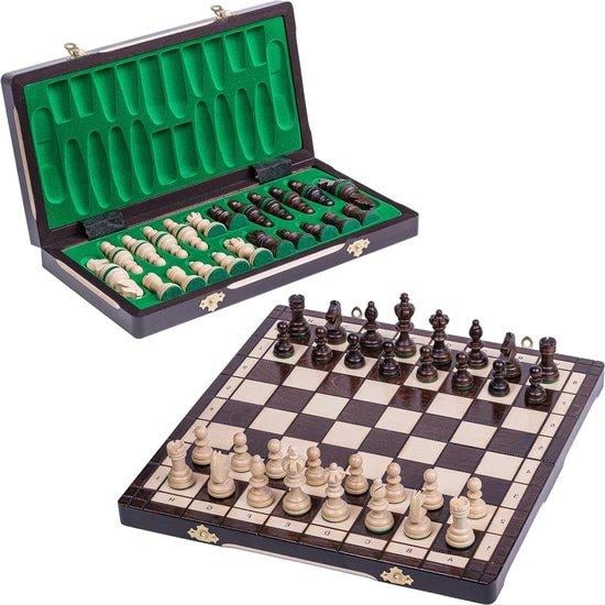 Grand jeu d'échecs en bois SENATOR 41 cm x 41 cm. Décorations gravées sur l'échiquier et les pièces.