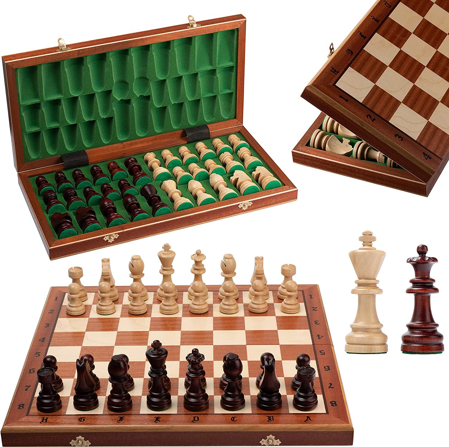 Grand jeu d'échecs en bois SENATOR 41 cm x 41 cm. Décorations gravées sur l'échiquier et les pièces.
