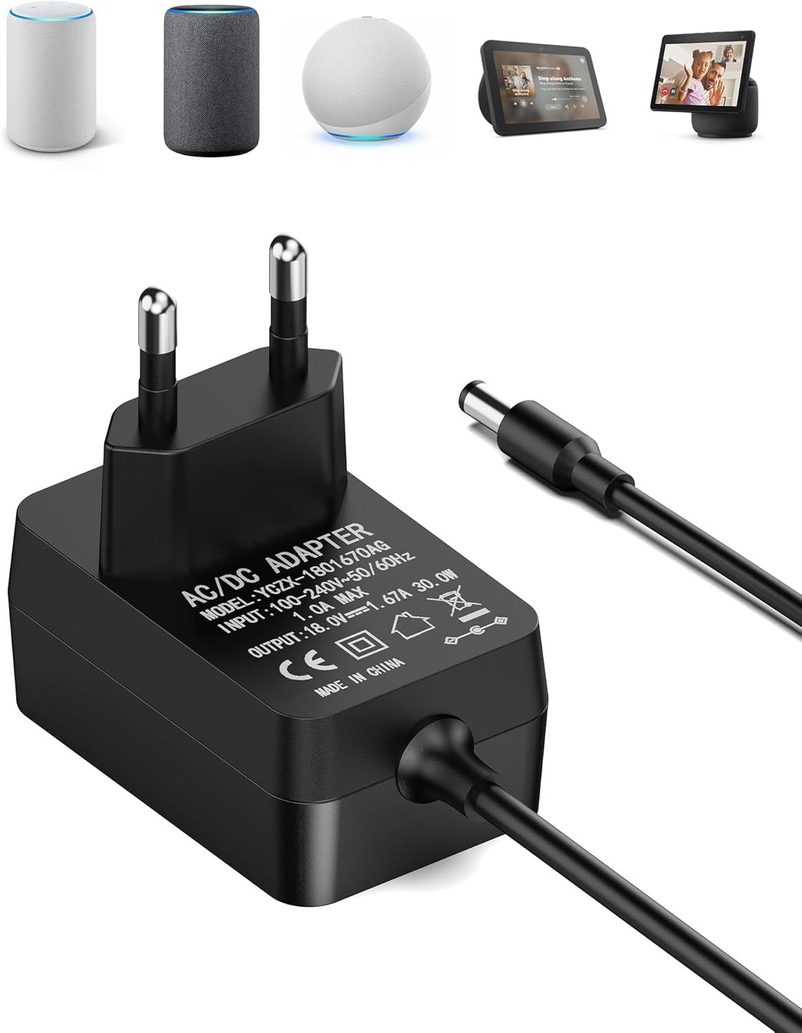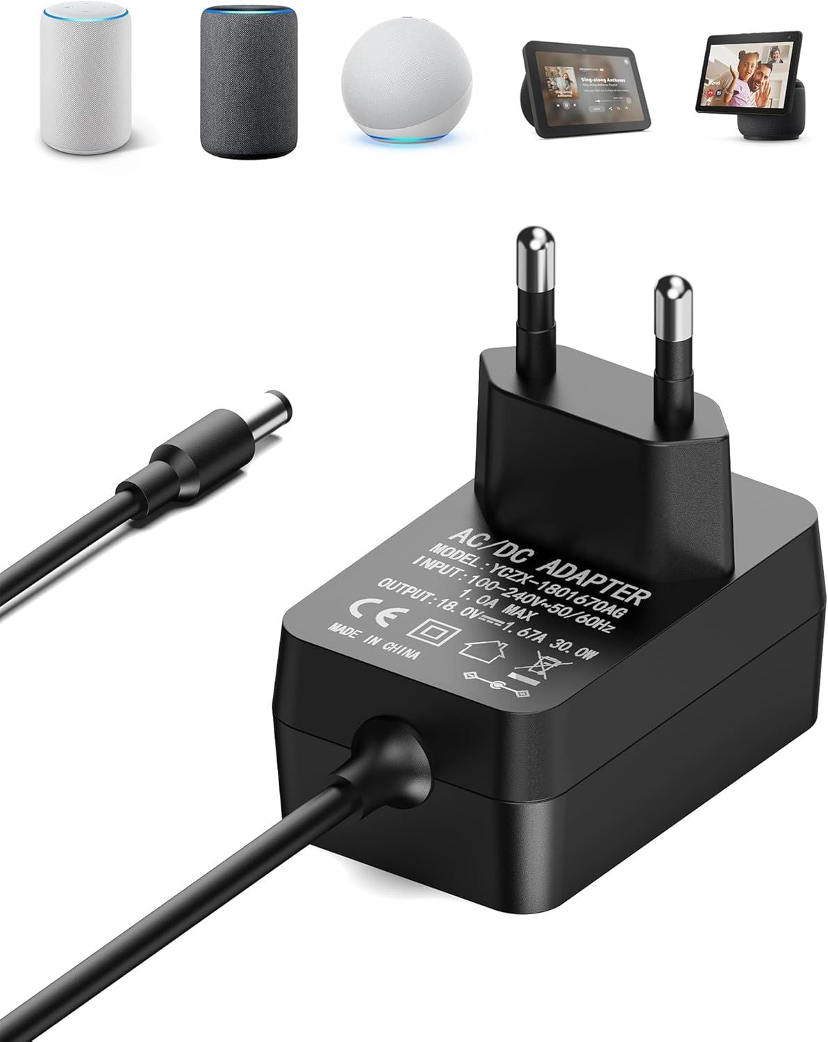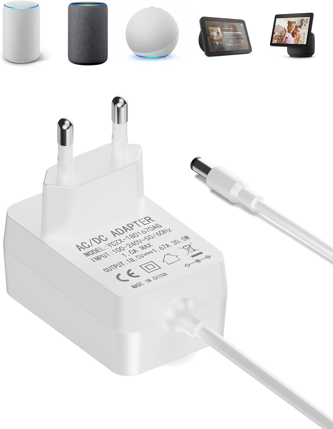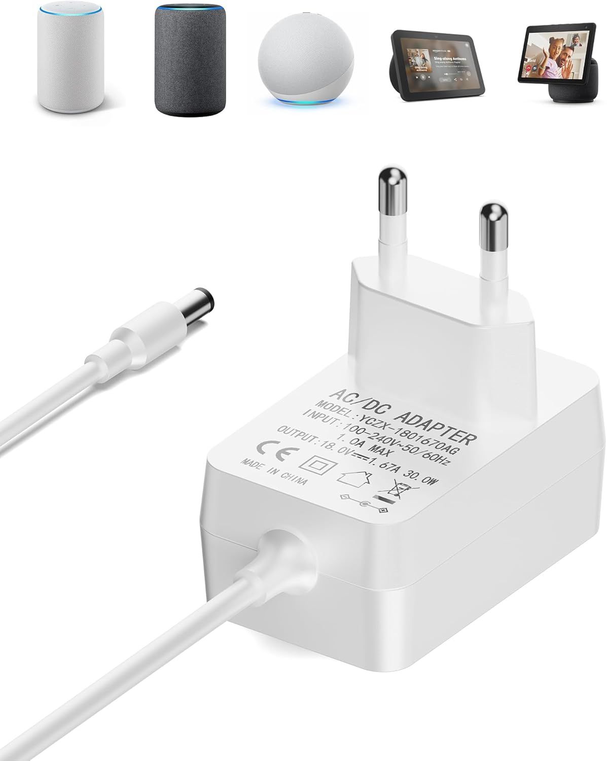 Top Chargeur * Adaptateur Secteur Alimentation Chargeur 18V pour Enceinte Alexa Amazon Echo Show 8 / Echo Plus 2nd Generation/Echo Show 2nd Generation/Echo Show 10 3rd Gen/Echo (3rd & 4th Gen)