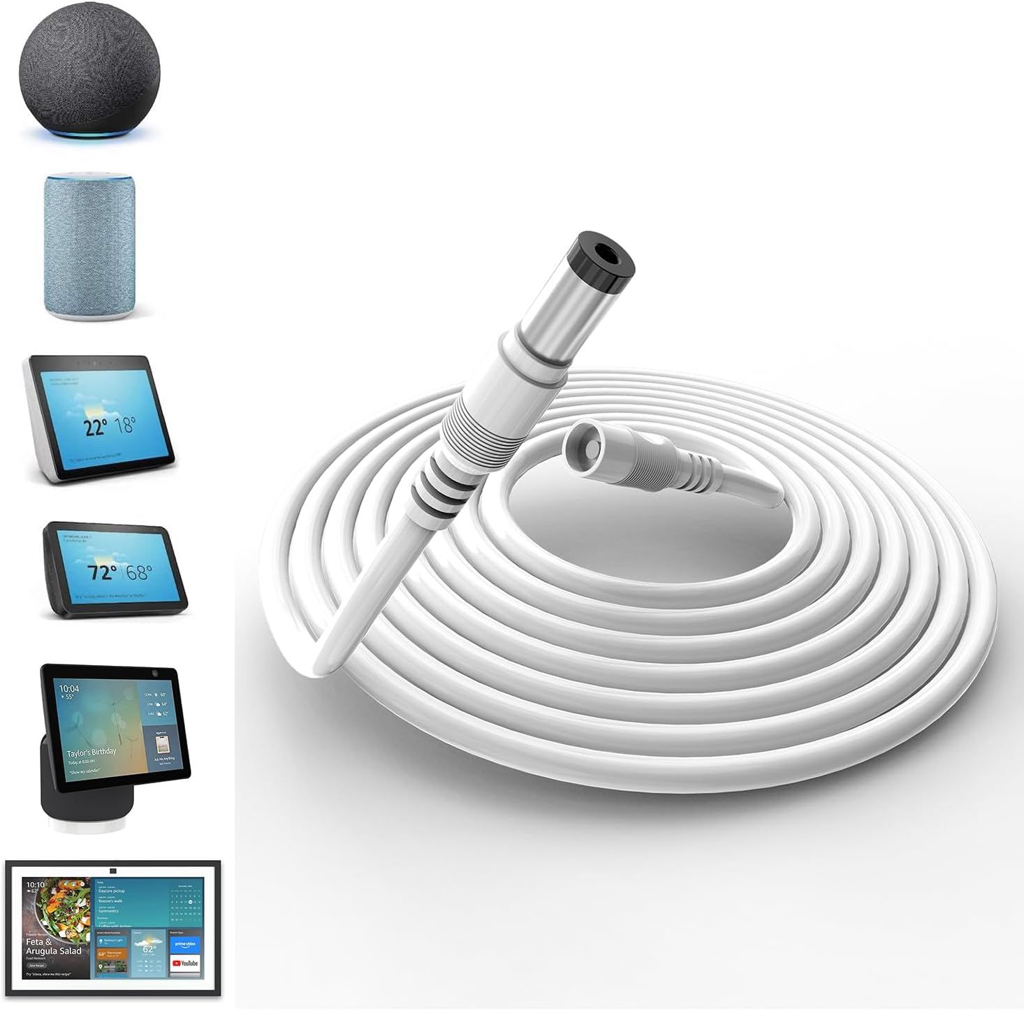 Tonton 5M Echo Show Câble d'extension DC pour Echo Show 15, Echo Show 8/10 |Câble pour Echo Dot (3.4.Gen), Echo Show 10 (3.Gen), Echo Show (2.Gen) Echo Plus (2.Gen) Câble d'extension DC, 5M Blanc