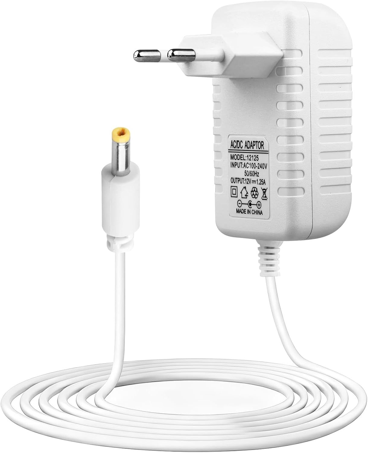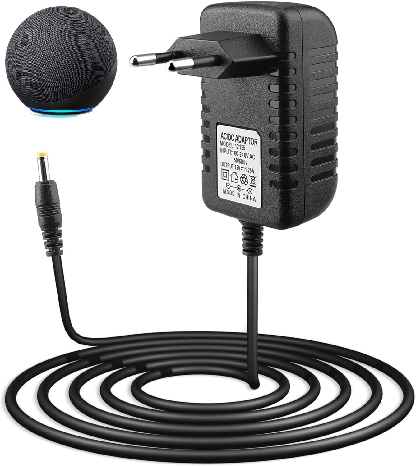 Adaptateur Secteur 15W pour Echo Dot 3e/4e Génération, Echo Dot avec Horloge, Echo Dot Kids, Echo Show 5 1re/2e Génération, Echo Spot et Cube – Chargeur 12V 1.25A 4.0 * 1.7 mm Câble 1,5 m