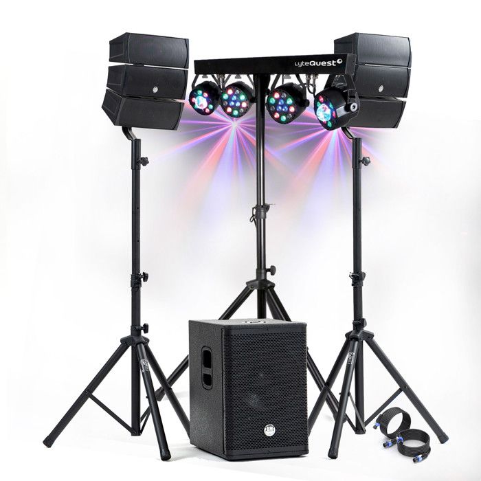 Pack Sono DJ 1000W complet BM SONIC Enceintes +SUB 31cm USB/Bluetooth, Câbles, Portique Eclairage LED, UFO, Bar Salle des fêtes