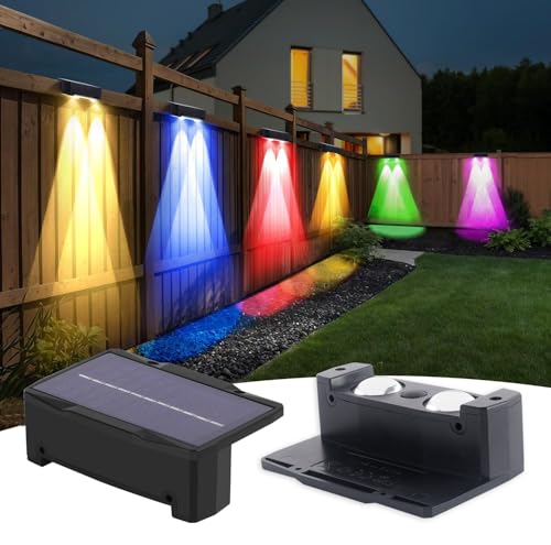 JBdusn 2 Pièces Applique Murale Solaire Extérieur, 12 Modes RGB Lampe Solaire Jardin, Étanche LED Lumières de Clôture, Lampe de jardin LED Éclairage de clôture pour Cour, Pont et Escalier