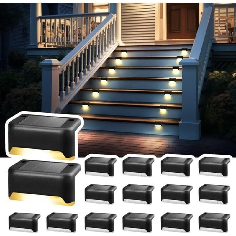 RHG Lot de 16 lampes solaires d'extérieur pour escalier - Étanche - Éclairage LED pour escalier extérieur, marches, clôture, cour, terrasse,