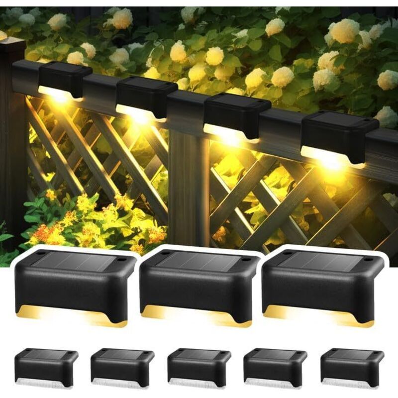 Solpex Lot de 8 Lampes solaires d'extérieur Blanc chaud Escalier Etanche Lampes Solaires Eclairage LED pour Escalier Extérieur, Marches Clôture, Jardin, Cour,Décoration (Noir,blanc chaud)