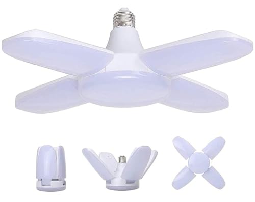 Jiotouhu Éclairage de garage à LED,60W E27 6500K 6000Lm Lampe d'atelier déformable à 4 panneaux ajustables, Plafonnier LED pour garage, Entrepôt, Atelier, Sous-sol, Gym, Cuisine (Pack de 1)