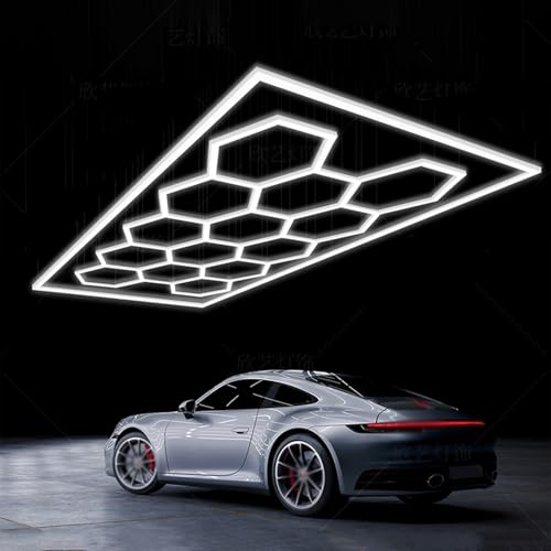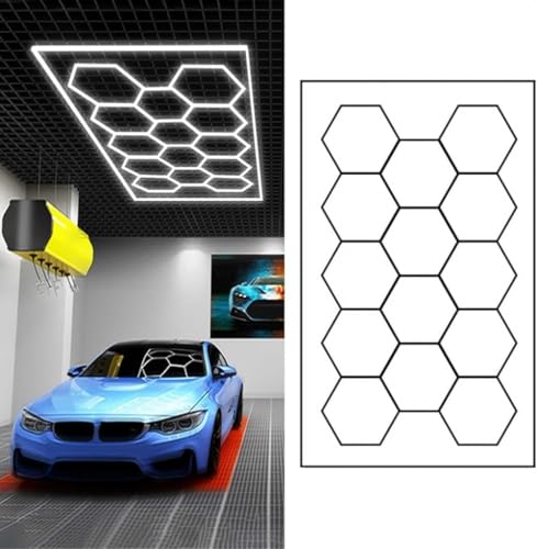 YIJIEHH Plafonnier LED Nid D'abeilles, Éclairage De Garage LED Hexagonal Design, pour Atelier, Garage Automobile, Station De Nettoyage, Bureau, Atelier Polissage Auto-D