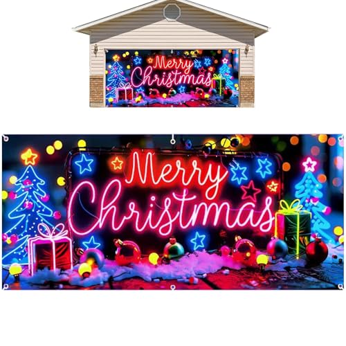 Bannière de décoration de Noël pour Porte de Garage, éclairage LED étanche et Grande décoration de Vacances, Couverture de Porte de Garage d'hiver, pour la Maison, Le Jardin, et la terrasse
