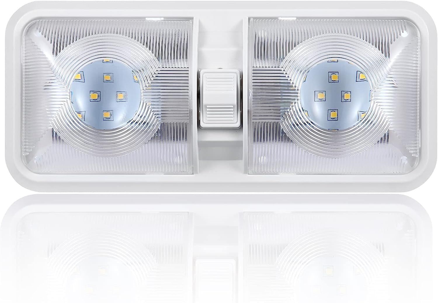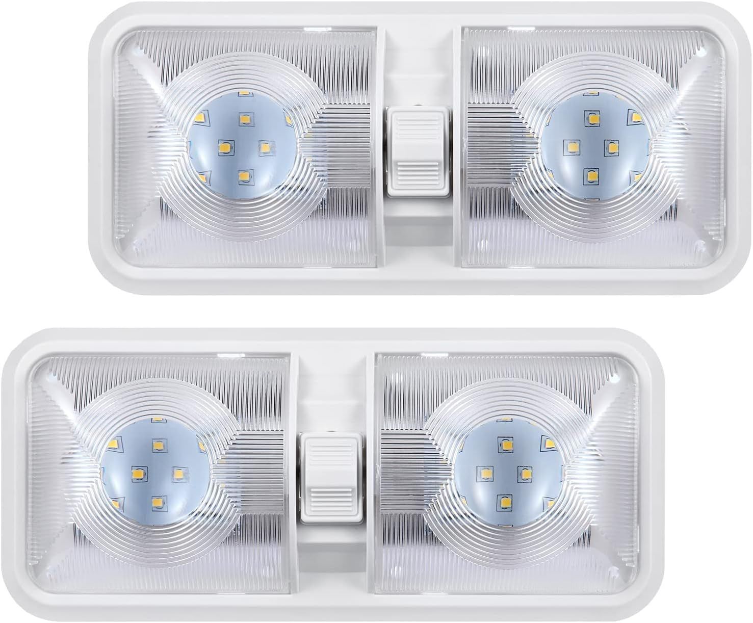 Kriogor 2Pcs 12V Lumières Intérieure à LED Lampe Eclairage, Plafonnier RV avec Interrupteur, 410LM réglable RV de Toit de Lampes pour Camping-Car, Bateau, Caravane