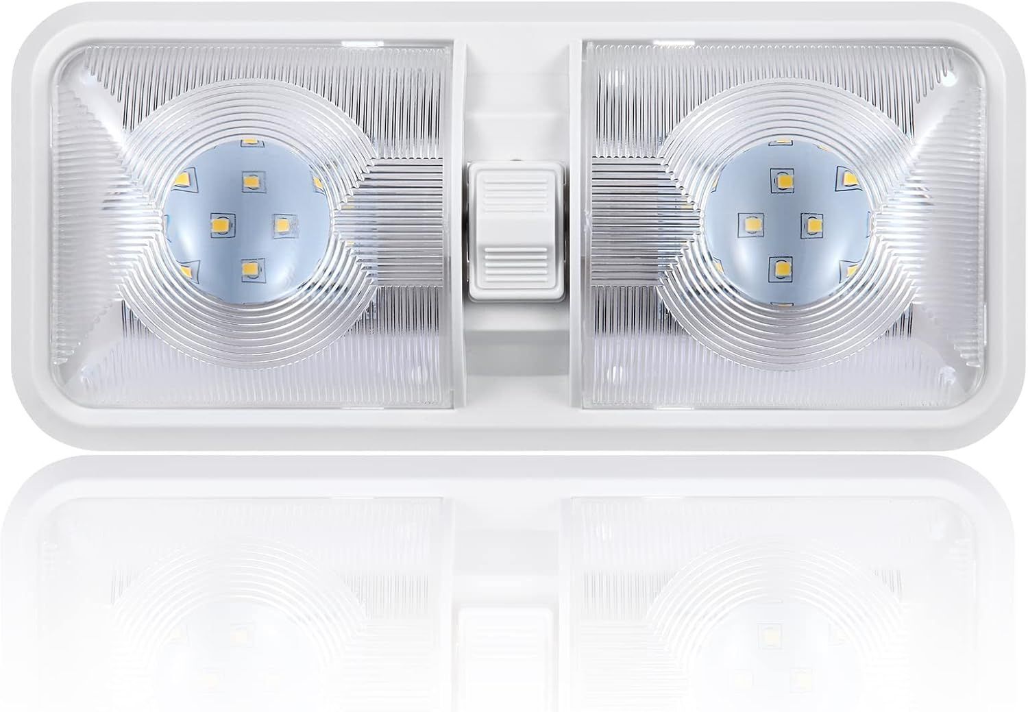 Kriogor 12V Lumières Intérieure à LED Lampe Eclairage, Plafonnier RV avec Interrupteur, 410LM réglable RV de Toit de Lampes pour Camping-Car, Bateau, Caravane
