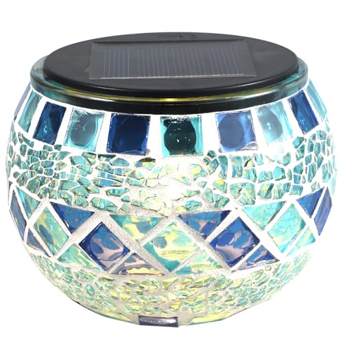 HOUDERCO Lampe Solaire en Mosaïque Bleue, Étanche et Résistante, Éclairage LED Extérieur pour Jardin, Terrasse et Décoration de Pelouse