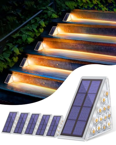 Bellanny 6 Pièces Lampe Solaire Exterieur, Lampes Solaires D'escalier D'extérieur Blanc Chaud, IP65 Étanches Eclairage de Marche à LED Lampe Solaire pour Jardin, Patio, Garage, Marche, Escaliers