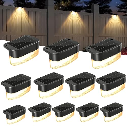 Dhqkqg Lampes Solaires D'escalier, 12 Pièces Eclairage à LED Lampe Solaire Exterieur, Lampes De Marche, IP65 Imperméable pour Escalier Marches Clôture, lumière chaude