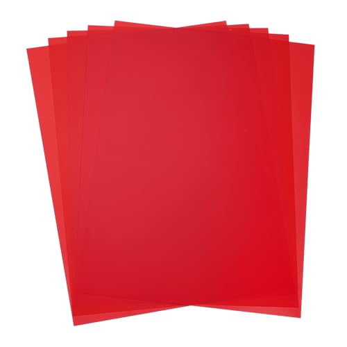 QUARKZMAN 5 Feuilles Plastiques Colorées, Film Transparent Ambré Filtre Lumière Gel Correction Couleur Imperméable 8.3 x 5.8 Feuille pour DIY Artisanat, Éclairage LED, Photo (Rouge)