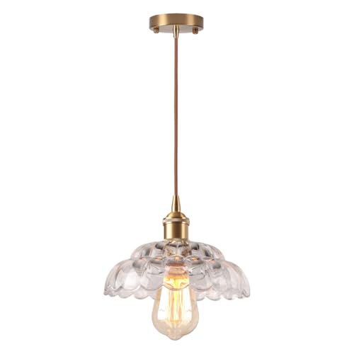 LIGINOK Luminaire Suspension Vintage Industriel Lustre en Verre E27 Abat-jour en Verre Lampe Suspendue Eclairage de Plafond pour Chambre Salon Cuisine Café(D,Transparent)