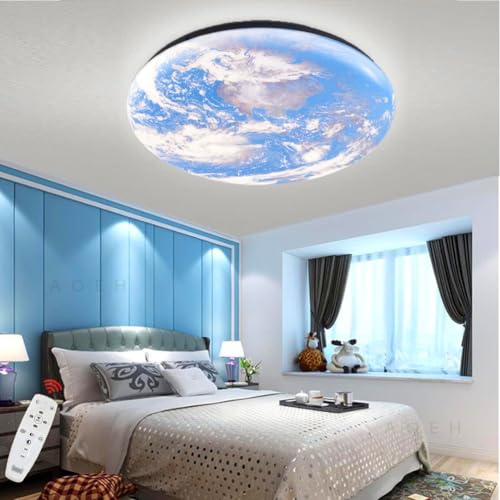 OOWOKS LED Lune Plafonnier Design Moderne Lune Plafonnier Dimmable 3D Lamp Mur Déco Terre Lamp Mur Lune avec télécommande Eclairage du Plafond pour Chambre à Coucher Salon,Earth Design,50cm