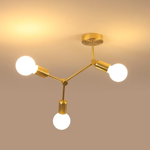 Comely Plafonnier Spoutnik Lustre Or, 3 Lumières Douilles E27 Moderne Lustres, Éclairage de Plafond pour Chambre, Cuisine, Couloir, Salle à Manger