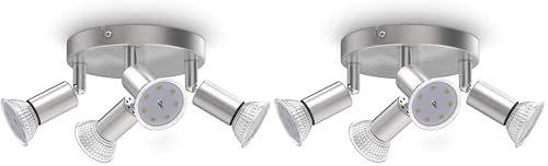 B.K.Licht plafonnier LED, 4 spots pivotants, avec ampoules LED GU10 3W 250lm, lumière blanche chaude, éclairage plafond chambre, salon salle à manger cuisine, Ø18cm (Lot de 2)