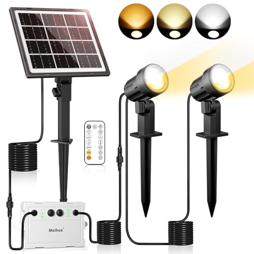 MEIHUA Lampe Solaire Exterieur avec Télécommande 2700K 4000K 6000K Spot Solaire 3 Luminosité 2 Modes Dynamiques Minuterie IP66 Etanche Éclairage Extérieur pour Chemins Jardin Terrasse Halloween Noël