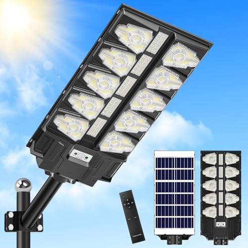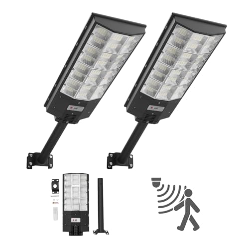 VEVOR Lampadaire Solaire Extérieur 12000 W Projecteur LED Solaire 900000 lm pour Allée Parking Cour, avec Détecteur de Mouvement, Télécommande, Éclairage du Crépuscule à l'Aube, Étanche IP65, Lot de 1