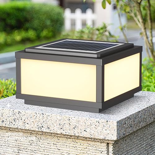 DOBQHWY Lampadaire Solaire Carré Avec Télécommande, Lampe De Poteau Haute Luminosité 1 Pièce, Étanche Et Résistant À La Pluie, Luminaire De Pilier Pour Éclairage Extérieur Au Sol, Cour, Balcon,