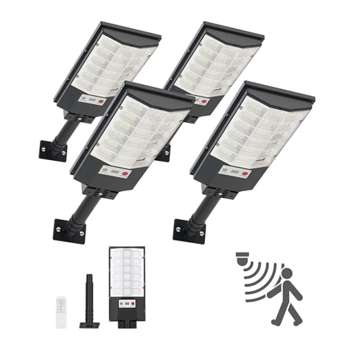 Gefolly Lampadaire Solaire Exterieur, 6500K Lampe Solaire Puissante avec Télécommande, IP67 Étanche Spot LED Extérieur Detecteur Pour Rue Garage Éclairage Public-4Pack