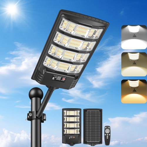 papasbox Lampadaire solaire LED 1200W avec télécommande | 6500K à énergie solaire avec détecteur de mouvement | Éclairage de chemin extérieur IP65 waterproof solar light for roads, yards, gardens