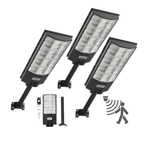 VEVOR Lampadaire Solaire Extérieur 8000 W Projecteur LED Solaire 450000 lm pour Parking Jardin Cour, avec Télécommande, Détecteur de Mouvement, Éclairage du Crépuscule à l'Aube, Étanche IP65, Lot de 3