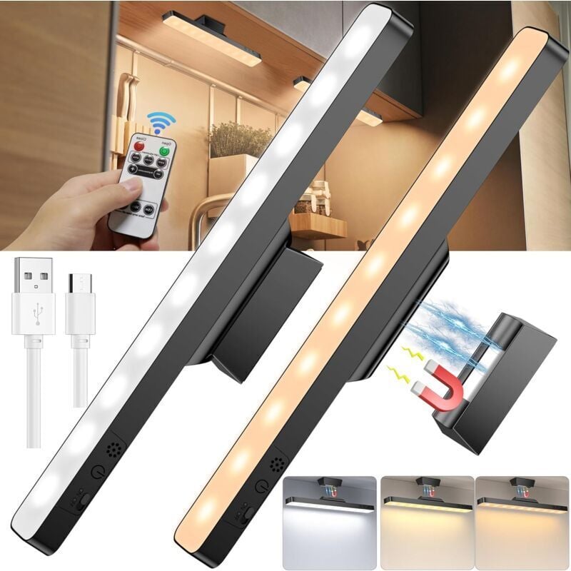 2 Pcs led Cuisine Sous Meuble Avec Télécommande, 3200mAh Lampe led Rechargeable, Eclairage D'armoire Dimmable Sans Fil Pour Cuisines, Chambres a