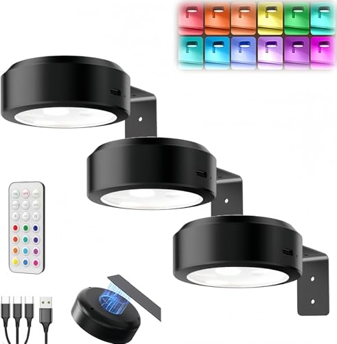 Electight Lampe Tableau Sans Fil Rechargeable, Lot de 3 Appliques LED avec Télécommande, Éclairage Tableau 12 Couleurs, Spot à Piles USB pour Peintures, Cadres, Décorations Murales et Vitrines