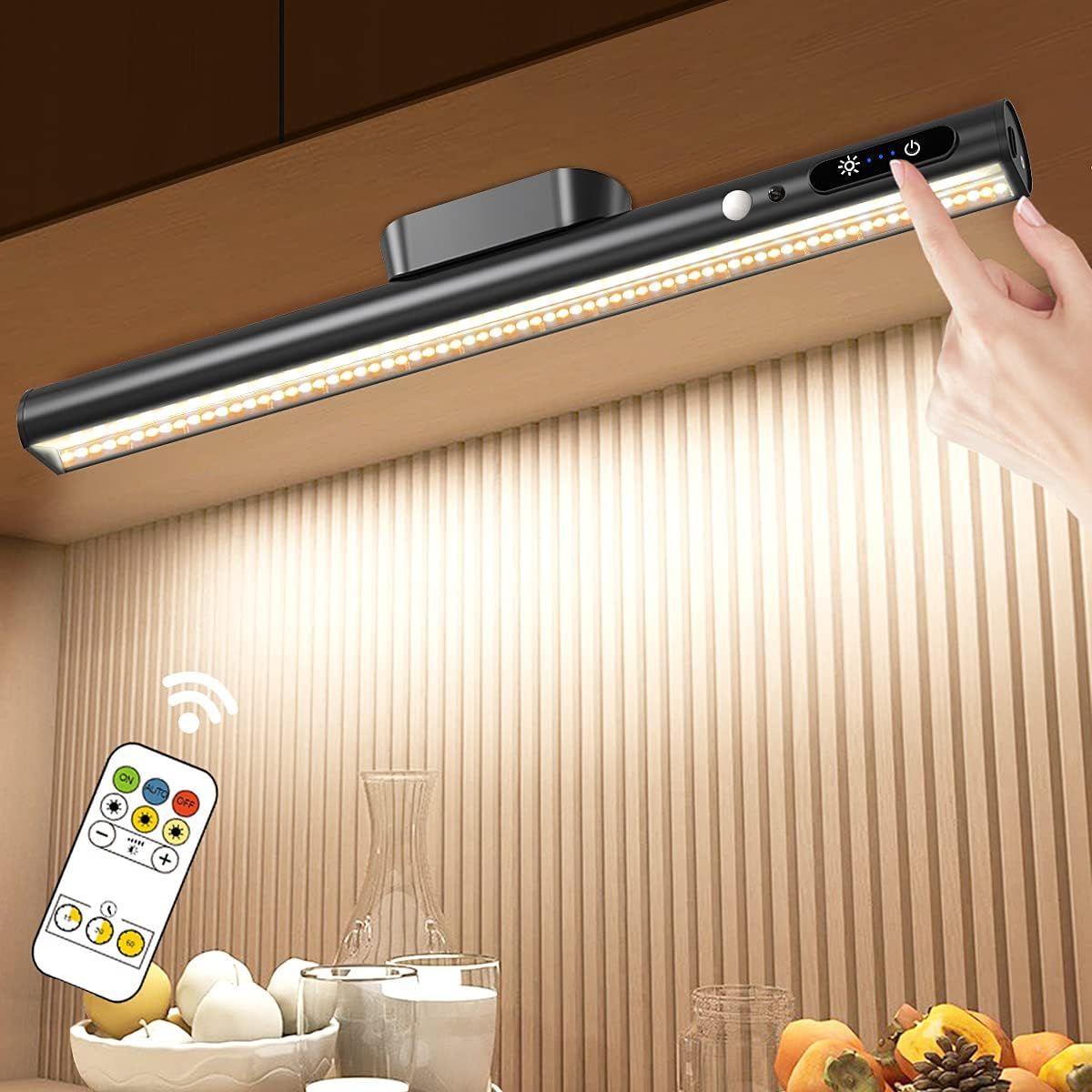 Reglette Led Cuisine Sans Fil Avec Detecteur Mouvement, 4000Mah Lampe De Bureau Rechargeable Usb, Lumiere Magnétique Avec Télécommande, Eclairage Murale Pour Placard, Tableau, Miroir, Armoire
