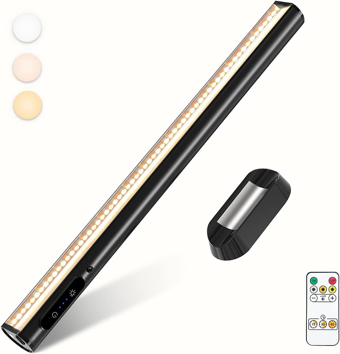 Hapfish Lampe de Bureau LED Sans Fil, 4000mAh Lumiere Rechargeable USB, Reglette LED Cuisine Magnétique avec Télécommande, Éclairage Murale pour Placard, Tableau, Miroir, Armoire, Bibliothèque